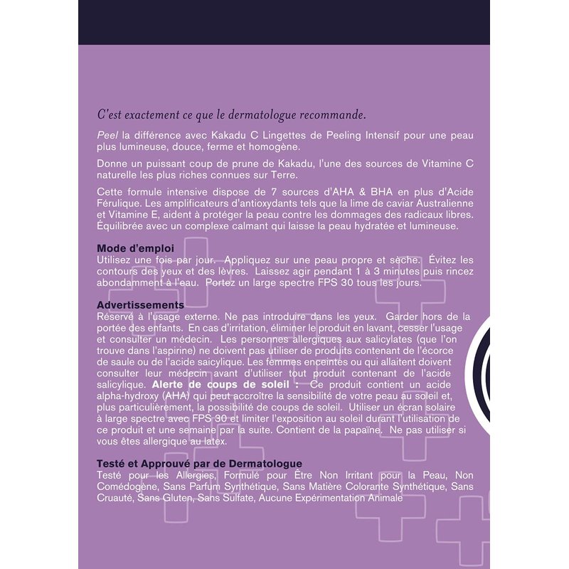 - Peel the difference with Kakadu C Intensive Peel Pads. This peel + treatment-in-1 delivers a powerful dose of Kakadu Plum, one of the richest natural Vitamin C sources known on Earth. This intensive formulation also features 7 sources of AHA & BHA plus Ferulic Acid to help create the appearance of brighter, smoother, firmer and more even skin.