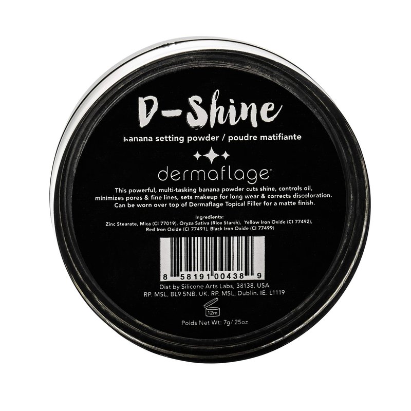 Discover the secret to poreless skin with D-Shine by Dermaflage, a versatile Banana Powder designed to save your complexion. Lightweight and finely milled, this loose setting powder effortlessly blends into your skin, providing a matte finish that never overpowers your foundation. Its unique yellow/golden hue works magic on a variety of skin tones, subtly correcting redness and pink undertones for a harmoniously even finish. Master the Art of Seamless Makeup Unlock the power of great makeup setting with D-Shine by Dermaflage. With its unparalleled ability to absorb oil, minimize pores, and blur fine lines, this ultra-lightweight Banana Powder offers a translucent effect on the skin, leaving nothing but a smooth, airbrushed look. Its subtle yellow tone effortlessly evens your skin tone, eradicating any redness or pink undertones. Whether it's a hectic workday or a relaxed weekend, trust D-Shine to keep your makeup looking fresh. Pure, Gentle and Effective D-Shine by Dermaflage is not just about delivering results—it's about doing so while respecting your skin. Free from parabens, talc, gluten, and fragrances, this Banana Powder puts your skin's health at the forefront. While it works exceptionally well over Dermaflage Topical Filler, its gentle formulation ensures that it seamlessly blends into your skin without causing irritation. Great for baking, D-Shine is the worthy addition to your makeup routine you've been waiting for. Benefits: -Ultra-lightweight, loose mattifying setting powder -Unique yellow/golden hue flattering on all skin tones -Absorbs oil, minimizes pores, and blurs fine lines -Seamlessly blends without overpowering foundation -Evens skin tone and corrects redness/pink undertones
