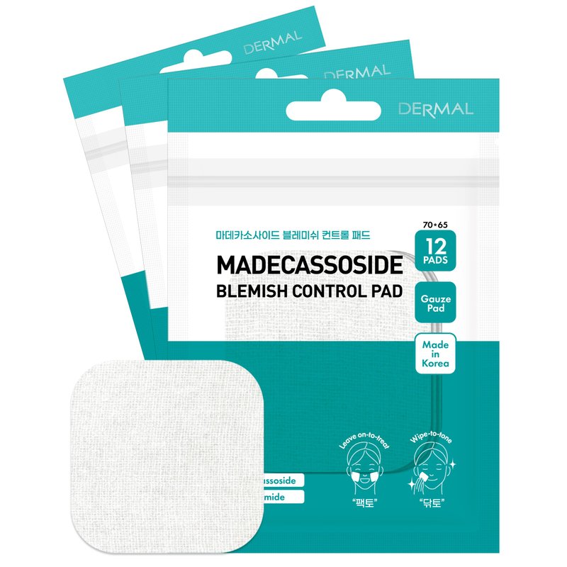 DERMAL Madecassoside Blemish Control Pad - Korean Toner Pad for Blemish & Tone Improvement with Centella Asiatica - Vegan Gauze Tencel Square Pads - Travel Kit 12 Pads, 3 Pack (Total 36 Pads)