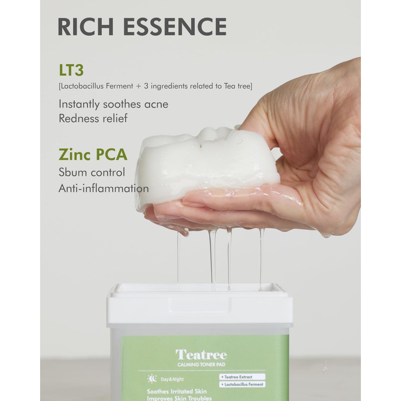 - SIMPLE AND EFFECTIVE USE: For best results, apply the Teatree Calming Toner Pad for about 3-5 minutes. Gently tap in the remaining essence and wipe around your face. For enhanced absorption, use two layers of pads. Fold the pad for narrower areas. This simple step brings you closer to achieving stunning skin.