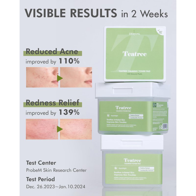 - KOREA'S TOP-NOTCH TONERS: Introducing DERMAL's Teatree Calming Toner Pad, crafted in Korea with a mild, weakly acidic formula to preserve skin's natural pH. Ideal for acne-prone skin, these pads offer relief from redness. Their unique active ingredients not only treat acne but also maintain overall skin health, ensuring a balanced complexion.