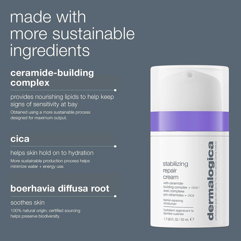 Dermalogica Stabilizing Repair Cream, Face Moisturizer for Sensitive Skin with Cica - Strengthens, Soothes, and Repairs Skin Barrier, 1.7 fl oz