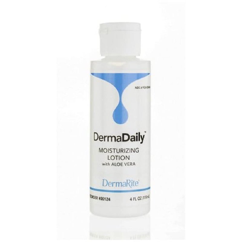 DermaRite's DermaDaily Moisturizing Lotion for Hand and Body - Daily Use Skin Moisturizer with Aloe Vera, Non-Greasy Formula - 4 oz. Bottle, 2 Count