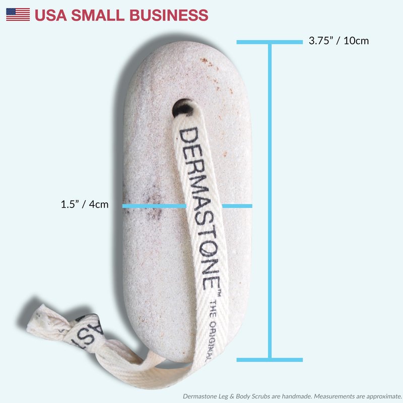 The Dermastone Leg & Body Scrub is a powerful in-shower exfoliator created to tackle real-life beauty issues that appear on the legs and body of many women. Its magic lies in its one-of-a-kind exfoliating texture that can: visibly remove dead skin, release superficial ingrown hair, exfoliate pores, and encourage cell turnover to reveal softer, smoother, more glowing skin. Recommended use is 1-2 times per week. Follow with a gentle body moisturizer for best results. With care, this 100% natural stone exfoliator can last you a lifetime.