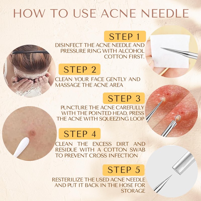 【ANTI-ALLERGIC MATERIAL】Our pimple remover tools are made of high quality 420 stainless steel with electroplated needles. Easy to sterilize and clean, safe for all skin types and will not cause any sensitivity issues.