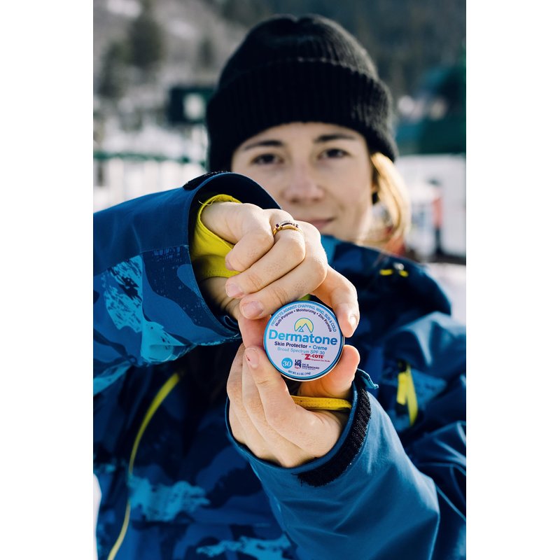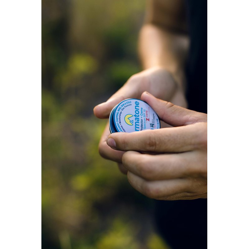 Dermatone Original Tin w/ Z-Cote SPF 30 provides lips and face protection from sun, wind, chapping and even frostbite. Our unique water-free formula incorporates a transparent zinc oxide finish, which helps moisturize the skin while providing SPF 30 sunscreen protection against harmful UVA and UVB rays. Our legendary tins fits any pocket and are perfect for all your outdoor activities. Made in USA.
