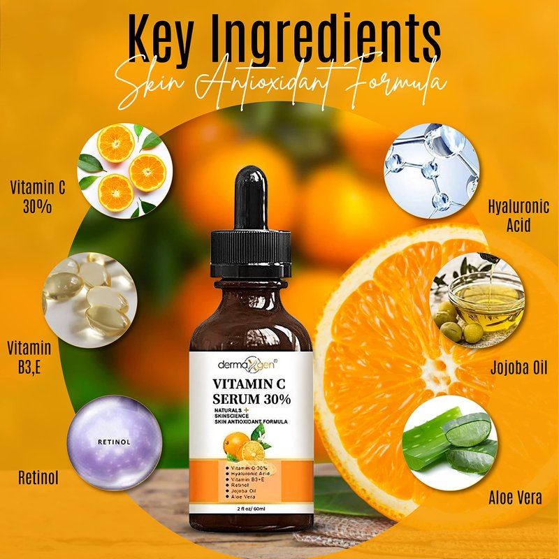 - NATURAL AND ORGANIC FORMULA: Dermaxgen topical vitamin C its anti-aging features is also great for protecting your premature aging skin. Topical Vitamin C is an antioxidant and powerful combination with ORGANIC extracts which natural strengthen, stimulates the skin cells. Protect prolong damage to your skin and keep your skin moisturized young and fresh longer.