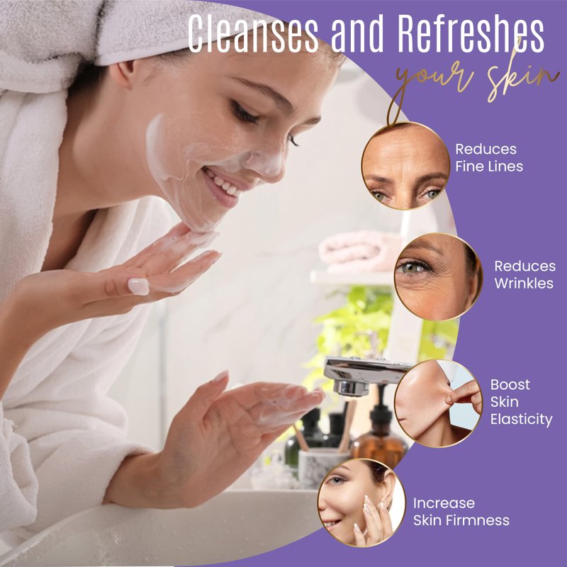 - Anti-Aging Properties: The vitamin C infusion in our skincare cleanser can help brighten your complexion, the hyaluronic acid improves hydration and suppleness, while the multi-peptide blend can help reduce the appearance of fine lines and wrinkles, boost elasticity and firmness and make your skin appear youthful and dewy!