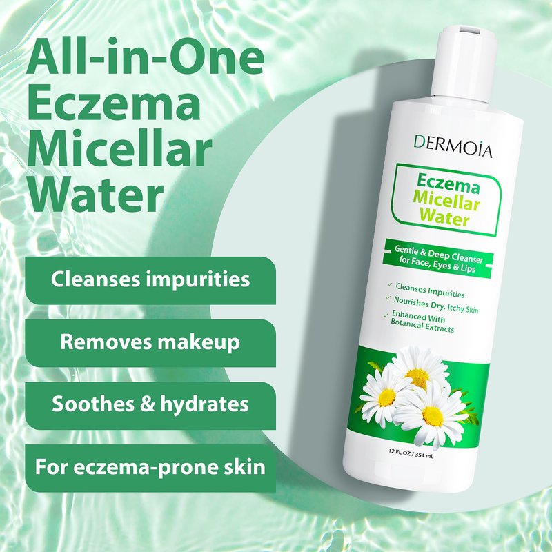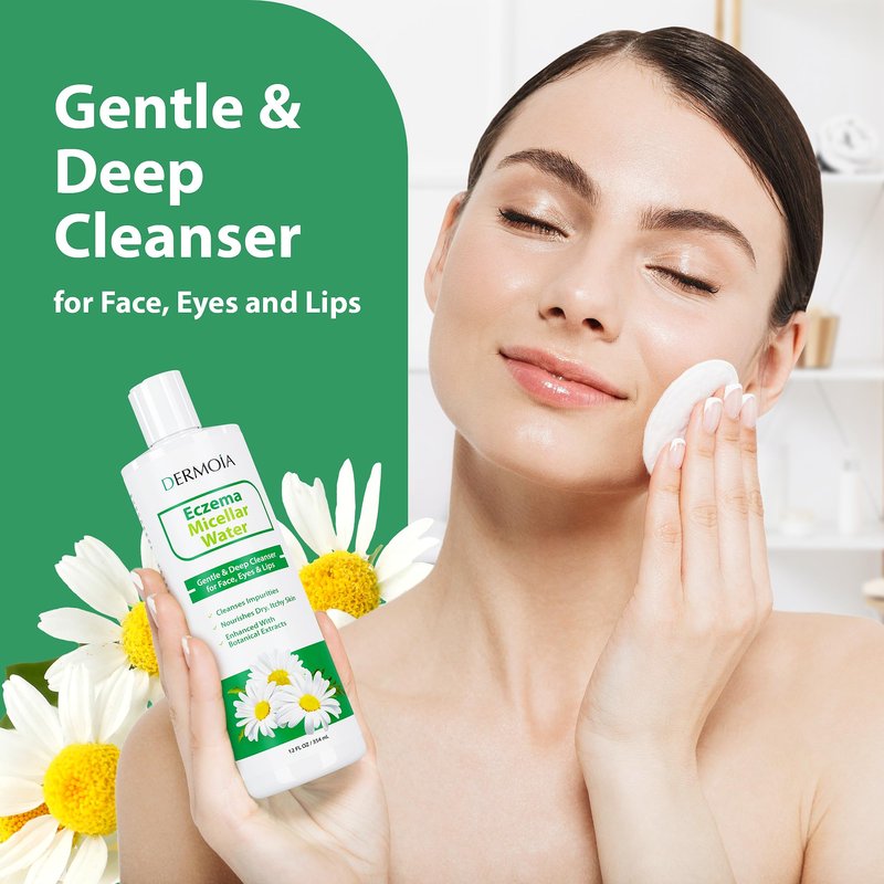 - ALL-IN-ONE ECZEMA MICELLAR WATER - DERMOIA Gentle Face Cleanser & Makeup Remover gently yet thoroughly removes deep-seated dirt, oil, & makeup while maintaining your skin’s moisture balance. This micellar cleansing water is a multi-action daily facial cleanser that refreshes & rejuvenates skin without harsh scrubbing.