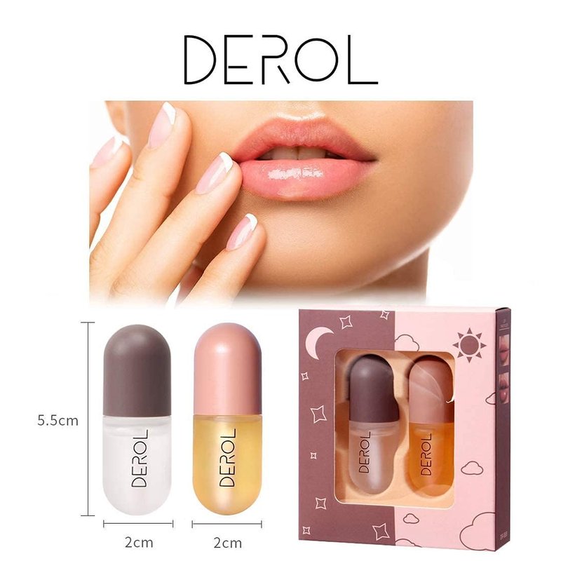 DEROL Lip Plumper by Vafee, Natural Lip Plumper and Lip Care Serum, Lip Enhancer for Fuller, Lip Mask, Beautiful Fuller, Hydrating & Reduce Fine Lines 5.5ML (Day& Night)