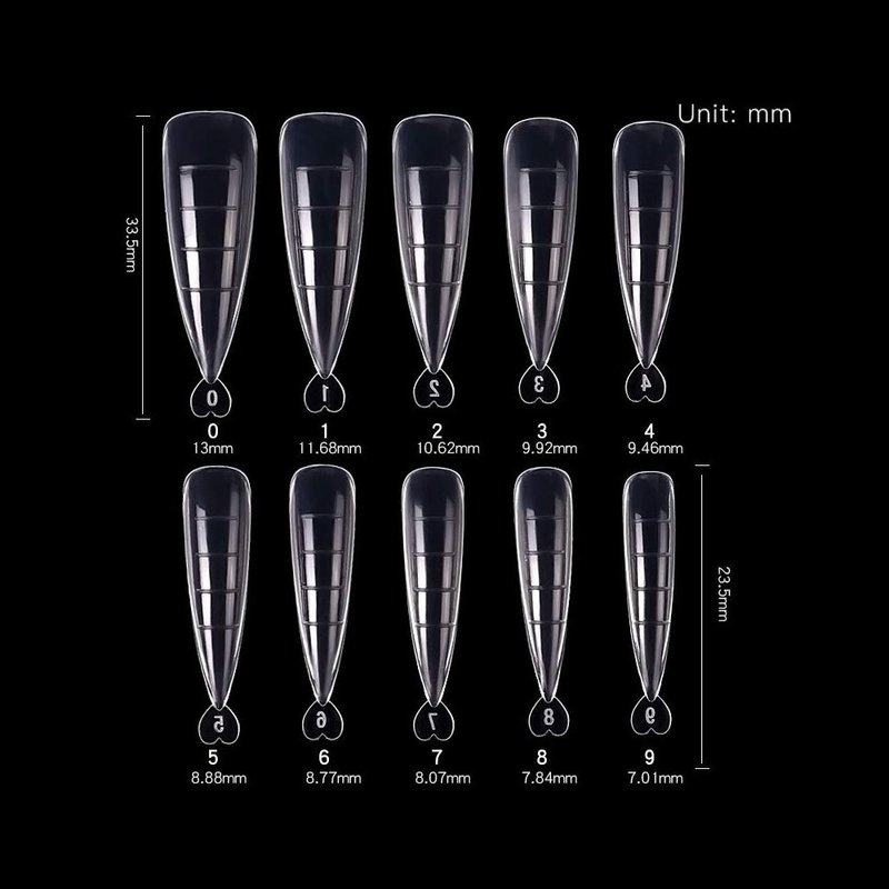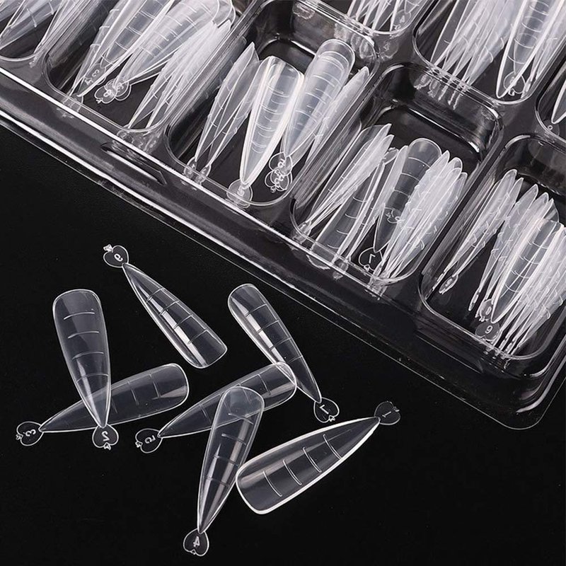 - 100pcs Dual Forms Stiletto are made with high quality ABS material, which is thick and sturdy enough to last about 2-3 week.10 Different Sizes, to meet the needs of different nails.