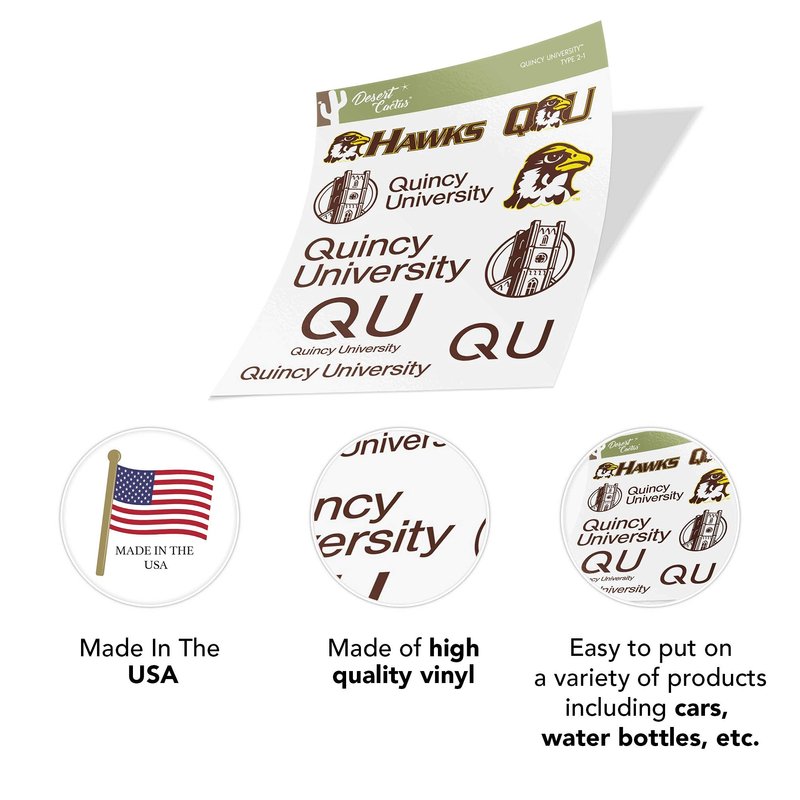 Desert Cactus Quincy University Stickers Hawks QU Vinyl Decals Laptop Water Bottle Car Scrapbook T2 (Type 2)