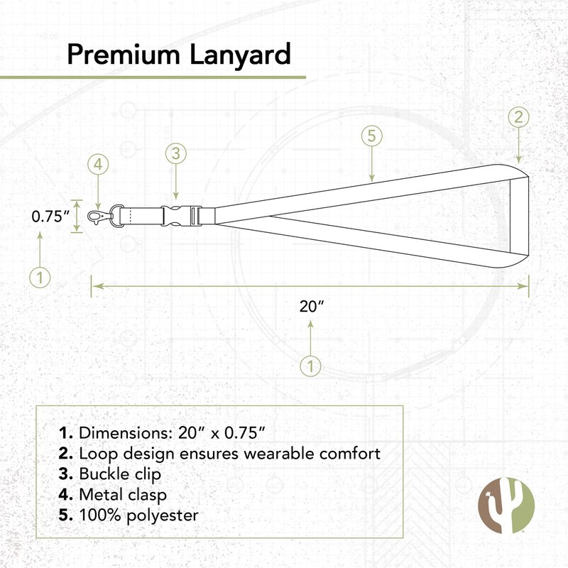 - Measurements - This lanyard measures 0.75 inches wide and 1.5 feet long from end to end.