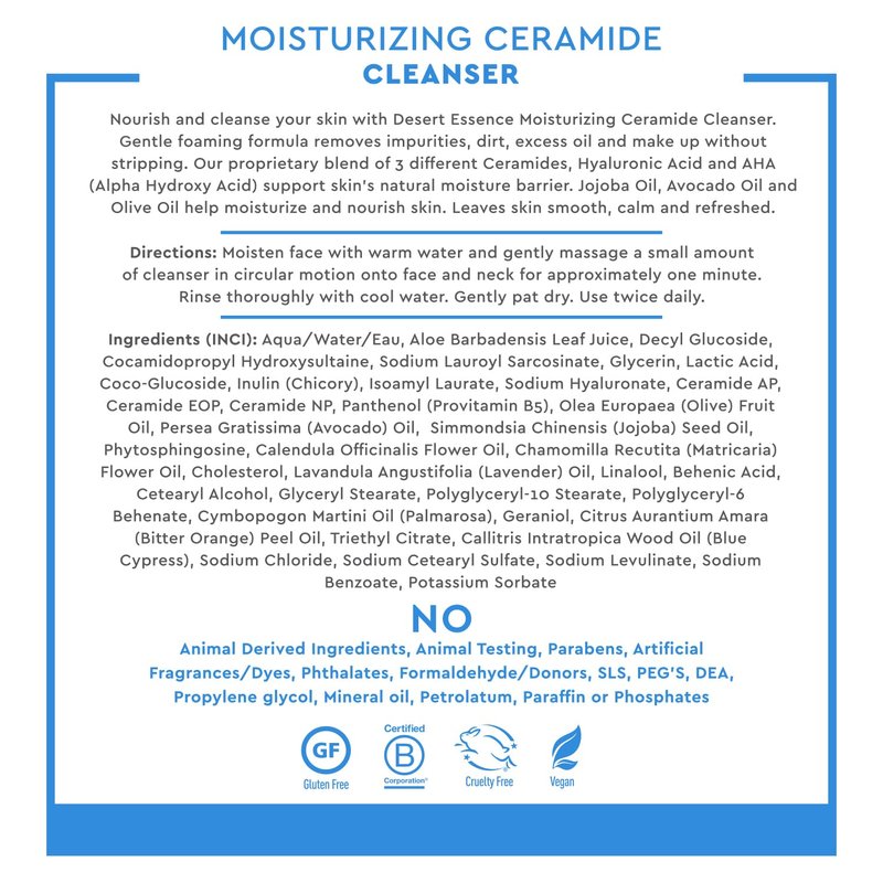 Desert Essence Moisturizing Ceramide Facial Cleanser 7.1 fl oz - Vegan, Gluten-Free. Cruelty-Free - Supports Skin's Natural Moisture Barrier - Moisturize and Nourish