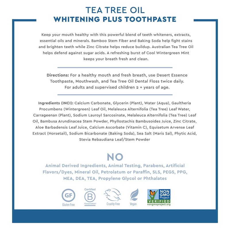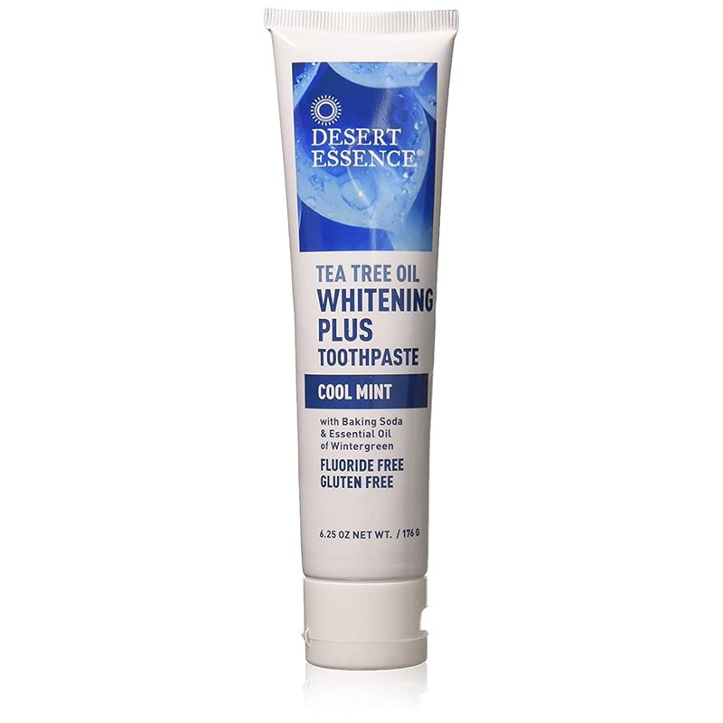 Desert Essence Natural Tea Tree Oil Whitening Plus Toothpaste - Cool Mint - 6.25 Oz - Antiseptic Tea Tree Oil - Zinc Citrate - Baking Soda - Freshens Breath - Reduced Plaque - Fluoride & Gluten Free