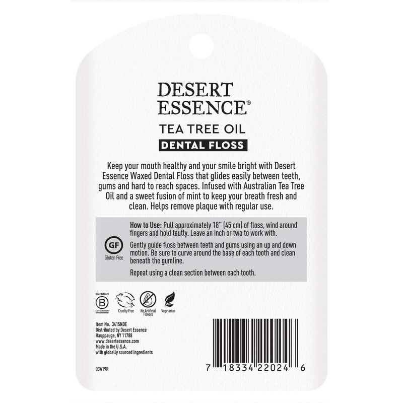 Desert Essence Tea Tree Oil Dental Floss - 50 Yards - Naturally Waxed w/ Beeswax - Thick Flossing No Shred Tape - On The Go - Removes Food Debris Buildup - Cruelty-Free Antiseptic