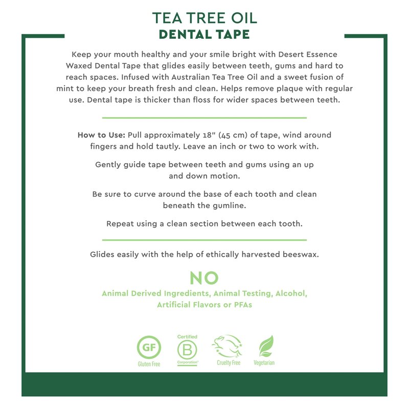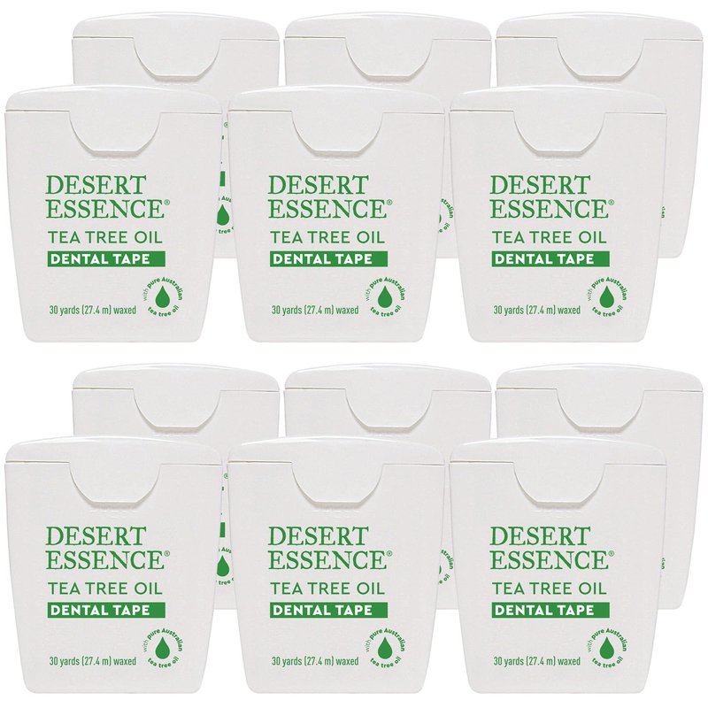Desert Essence Tea Tree Oil Dental Tape - 12 Count (Pack of 1) - Naturally Waxed w/Beeswax - Thick Flossing No Shred Tape - On The Go - Removes Food Debris Buildup - Cruelty-Free Antiseptic