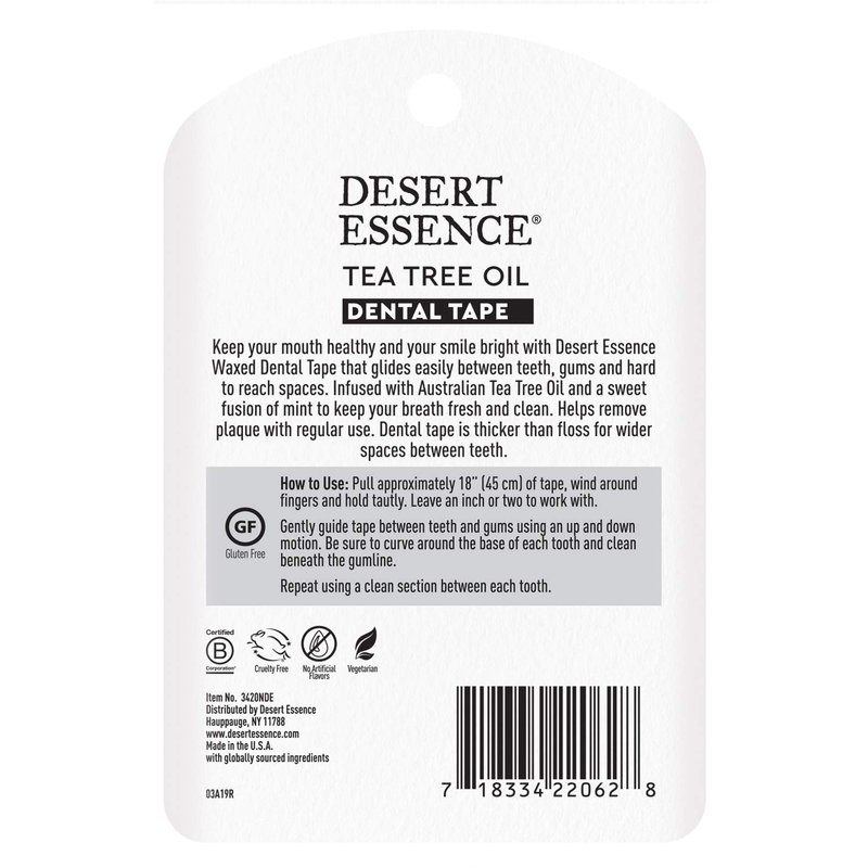 Desert Essence Tea Tree Oil Dental Tape - 30 Yards - Pack of 6 - Naturally Waxed w/Beeswax - Thick Flossing No Shred Tape - On The Go - Removes Food Debris Buildup - Cruelty-Free Antiseptic