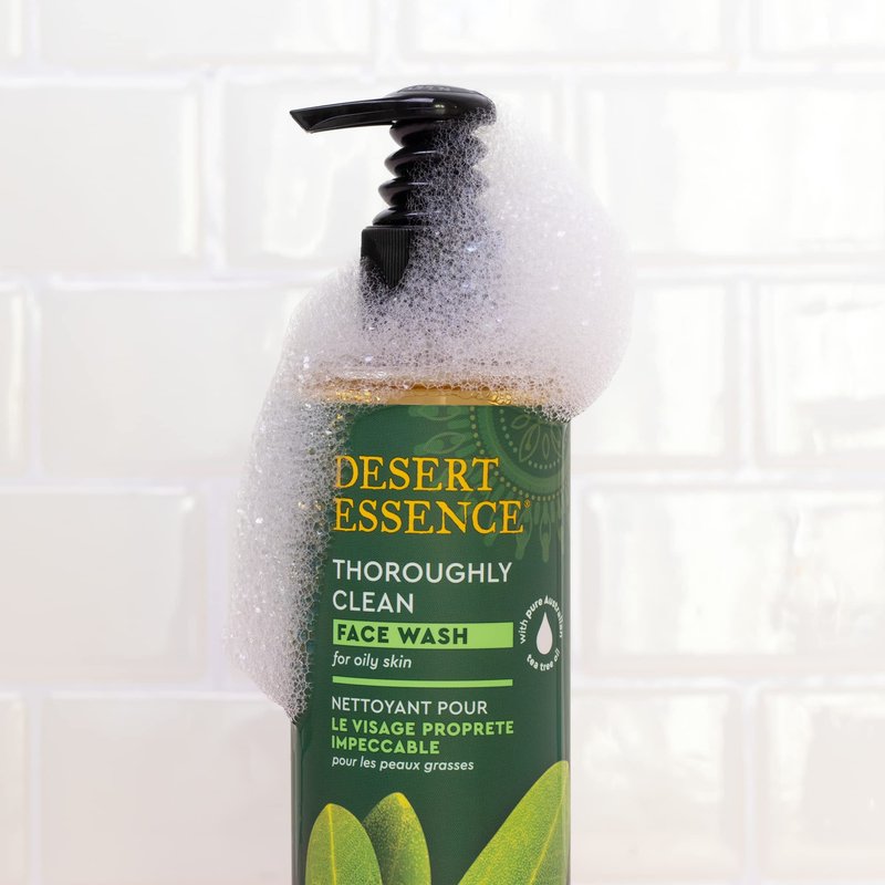 Desert Essence Thoroughly Clean Face Wash - Original - 8.5 Fl Oz - Pack of 2 - Tea Tree Oil - For Soft Radiant Skin - Gentle Cleanser - Extracts Of Goldenseal, Awapuhi, & Chamomile Essential Oils