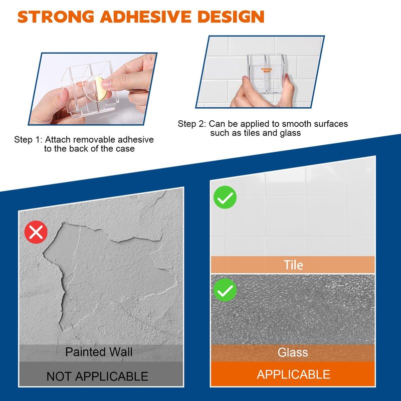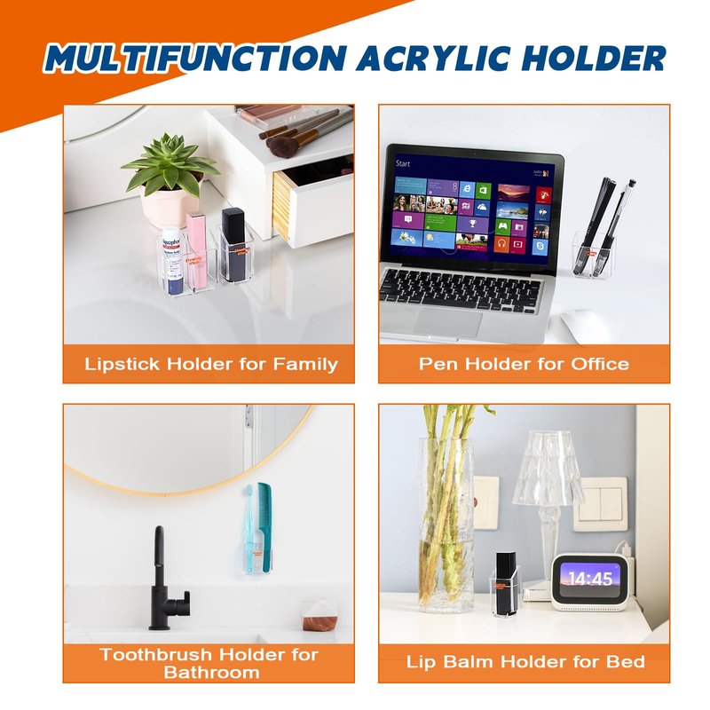 - 👍 UPRIGHT OR WALL-MOUNTED - Coming with removable adhesive, you can stick the acrylic lip balm holder on desk, tile, glass and cabinet. (Note: not suitable for wall) You can also place it randomly on a flat surface, or use removable adhesive to fix the bottom to the table.