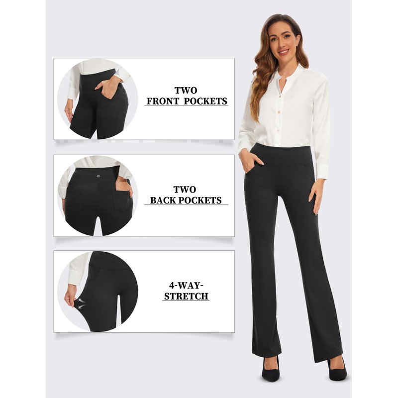 - 【Functional 4 Pockets】These workout pants have 2 deep front pockets and 2 back pockets which are ideal for keeping your keys,cards,money or phones safely.Totally 4 pockets, you can go wallet-free and focus on your exercise or haning out at any time.This is probably one of the reason why women loves Desol bootcut yoga pants.