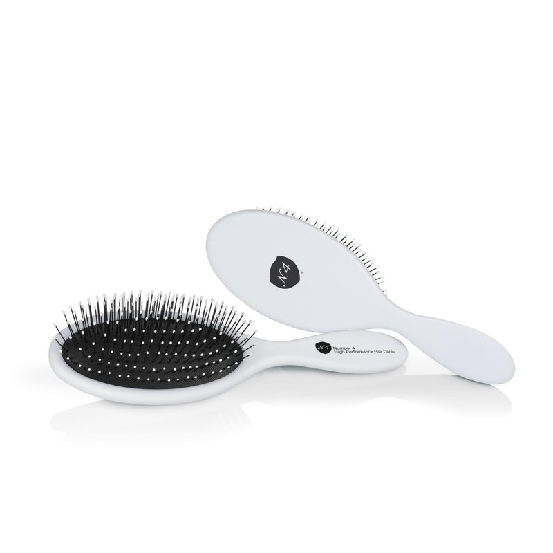Introducing the revolutionary Number 4 Detangling Brush, where innovative bristle technology meets ergonomic design to transform your hair care routine into a luxurious, stress-free experience. Designed with your hair’s health and happiness in mind, this brush features unique, gentle bristles that effortlessly glide through tangles, minimizing hair breakage and making detangling a painless affair. Whether your hair is dripping wet or completely dry, our brush ensures a smooth passage, promoting 100% happier, healthier hair. Embrace the diversity of hair types with our inclusive L’eau de Mare Brush. It's more than just a tool; it's a universal hair champion that celebrates all hair textures - straight, curly, textured, thick, and wavy. This brush is the ultimate ally in your quest for smooth, effortlessly detangled hair, ensuring no strand is left behind, regardless of its type. Beyond detangling, the Number 4 Detangling Brush is dedicated to the overall health of your hair and scalp. Each stroke not only rids your hair of knots but also protects it from potential split ends and breakage. This gentle yet effective approach promotes a healthier scalp and improves hair texture, making it a must-have in your daily grooming ritual. For those devoted to their hair care routine, pair this detangling brush with your favorite Number 4 products, such as the Super Comb Prep & Protect, for enhanced results. This combination is sure to unlock the full potential of your hair, leaving it manageable, soft, and radiant. Crafted for daily use, the brush's ergonomic design ensures it fits comfortably in your hand, making detangling an effortless and enjoyable task. Whether you're gearing up for a busy day or winding down for the night, this brush is designed to make your hair care routine as pleasant as possible. Elevate your hair care experience with the Number 4 Detangling Brush – where style meets substance, and hair health is never compromised. ### Short Product Description Discover the ultimate detangling solution with the Number 4 Detangling Brush, featuring innovative bristle technology and an ergonomic design for the ultimate hair care experience. Gentle on wet or dry hair, these bristles effortlessly glide through tangles, reducing breakage and promoting healthier, happier hair. This inclusive brush works wonders on all hair types, from straight to wavy, curly, thick, and textured, ensuring every strand is smoothly detangled without discrimination. Protect your hair’s integrity with every stroke, preventing split ends and breakage for a healthier scalp and texture. Pair it with your favorite Number 4 products for optimal results and enjoy the comfort of its ergonomic design for daily use. Make detangling a stress-free, enjoyable part of your routine with the Number 4 Detangling Brush – your hair’s new best friend.