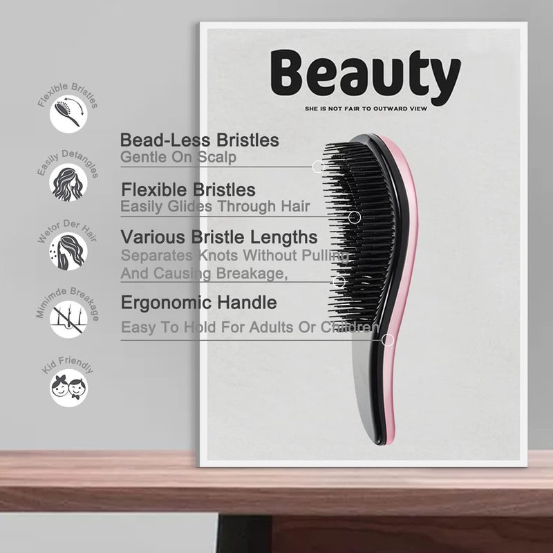 Detangling Hair Brush for Adults & Kids Hair, Detangler Brush for Natural, Curly, Straight, Wet or Dry Hair, Hairbrush for Men & Women - 1 Pack (Rose gold)