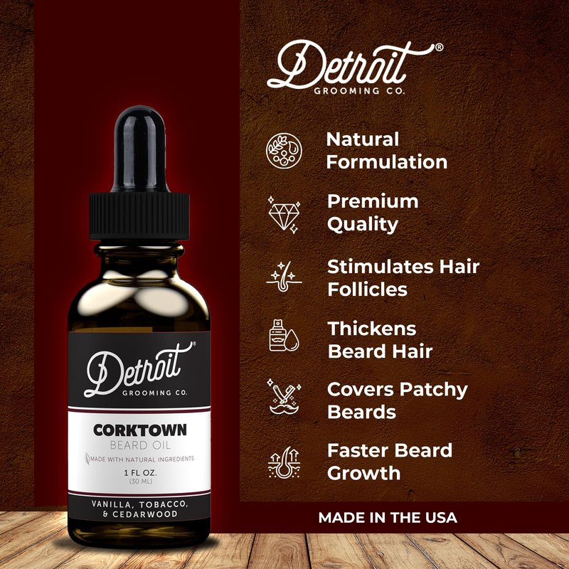 - MANUFACTURED IN USA: Each bottle of Detroit Grooming Co Beard Oil is handmade with care, guaranteeing the utmost attention to detail in every batch. Our specially crafted blend provides essential nutrients that nourish your beard and giving you the beard you've always desired.