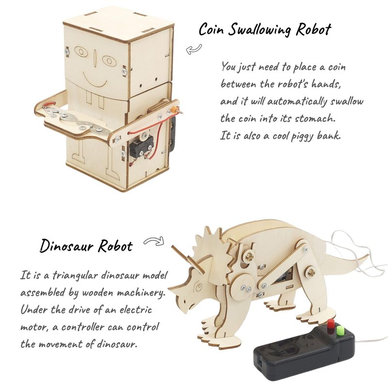 - Fun Activities: The robot kit provide perfect stem activities for kids. By assembling wooden puzzles, motors, circuits, gears, shafts and screws in our stem kits, children will learn basic STEM science and improve hand-on skills, enhance their self-confidence and creativity. Learning by Playing!