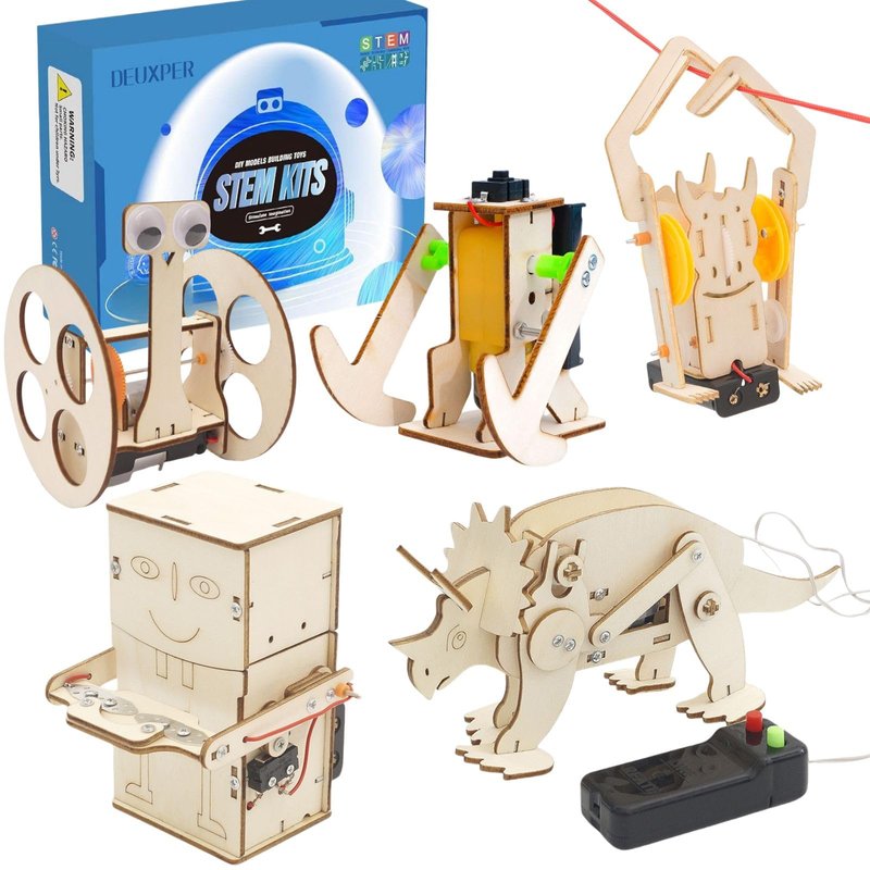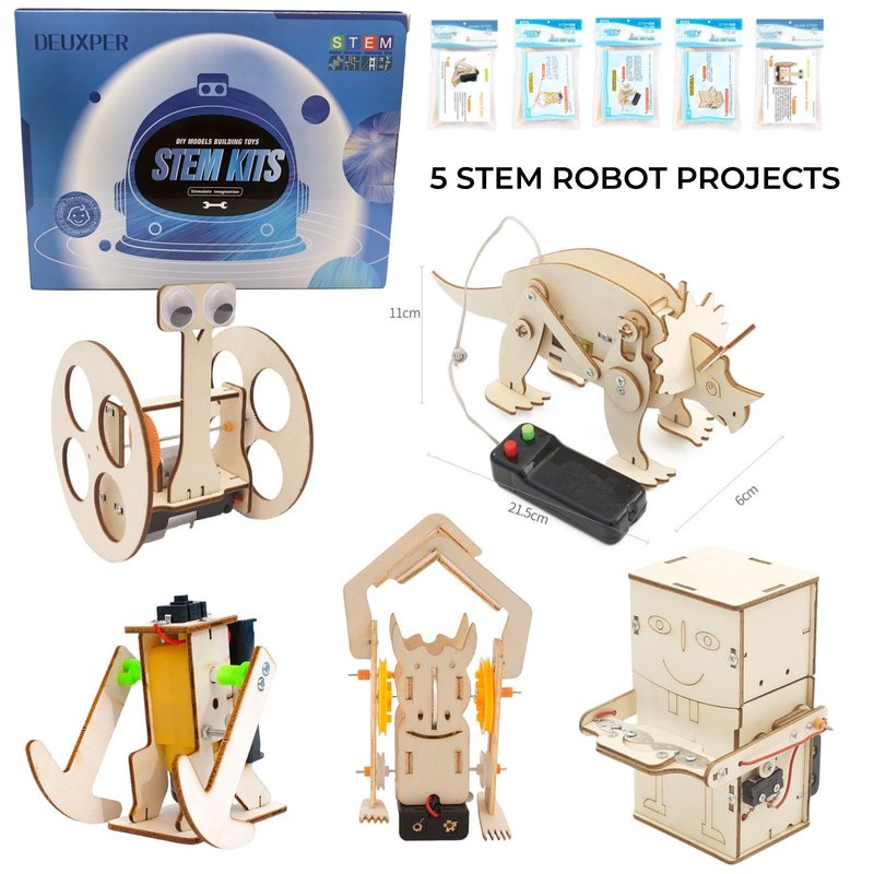 DEUXPER 5 Sets of Robot STEM Toys for Kids, Wood Craft Kit for Boys Age 8-12, DIY Science Building Projects for 6-8, 3D Puzzles Assembly Models, Gift for Children Age 6 7 8 9 10 11 12 14