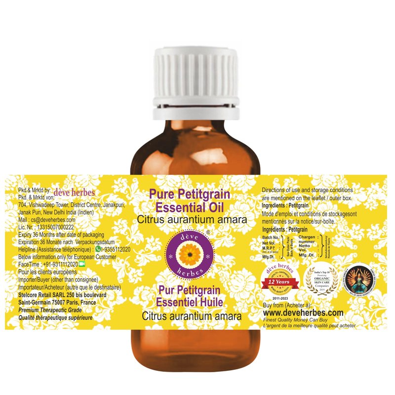 Deve Herbes Pure Petitgrain Essential Oil (Citrus aurantium amara) Steam Distilled