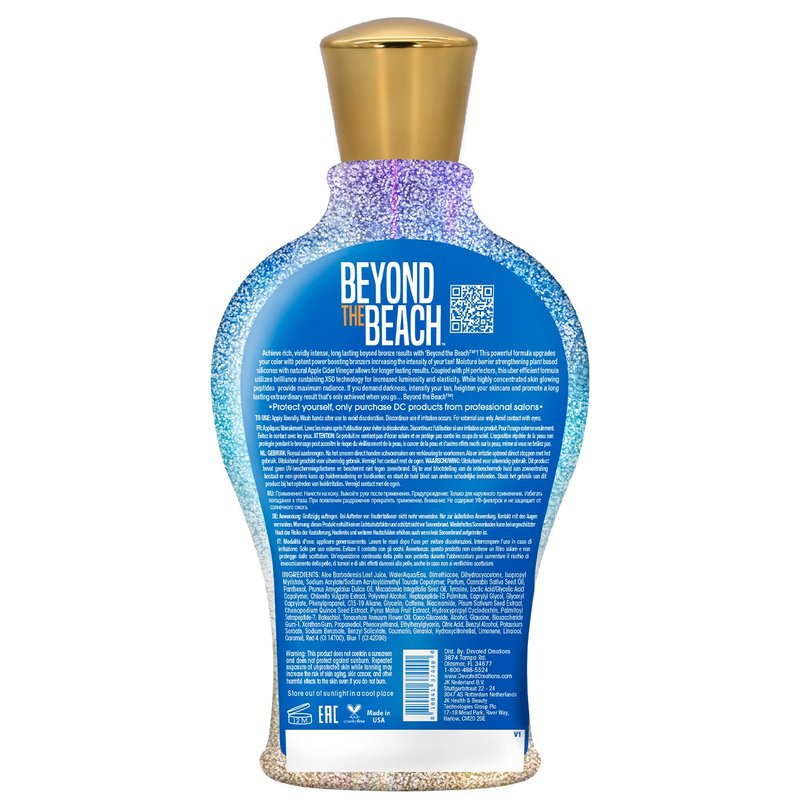 Achieve rich, vividly intense, long lasting beyond bronze results with ‘Beyond the Beach’! This powerful formula upgrades your color with potent power boosting bronzers increasing the intensity of your tan! Skin strengthening plant-based silicones with natural Apple Cider Vinegar allows for longer lasting results. Coupled with pH perfectors, this uber efficient formula utilizes brilliance sustaining X50 PhotoGlow for increased luminosity and elasticity, while GlowPlex utilizes highly concentrated skin glowing peptides to provide maximum radiance. If you demand darkness, intensify your tan, heighten your skincare and promote a long lasting extraordinary result that’s only achieved when you go…Beyond the Beach!