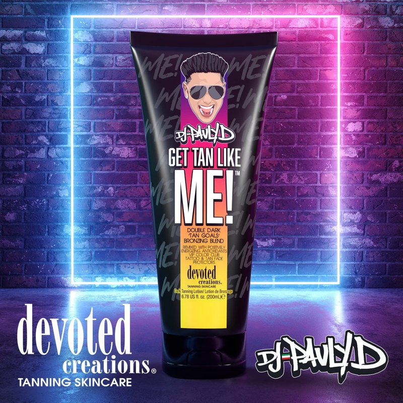Devoted Creations DJ Pauly D Get Tan Like Me! Dark Tanning Lotion – Double Dark ‘Tan Goals’ Bronzing Blend – Remixed with Positively Energizing Antioxidants VIP Color Club Tattoo and Tan Fade Protectors – 6.78 oz.