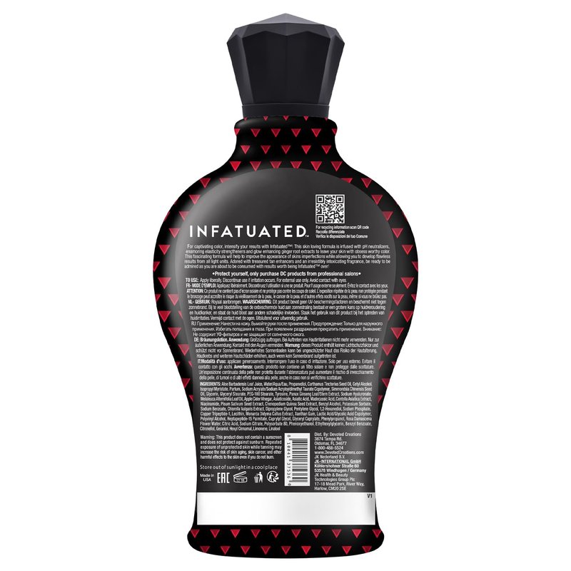 For captivating color, intensify your results with Infatuated! This skin loving formula is infused with pH neutralizers, enamoring elasticity strengtheners and glow enhancing ginger root extracts to leave your skin with obsess worthy color. This fascinating formula will help to improve the appearance of skins imperfections while allowing you to develop flawless results from all light units. Adored with treasured tan enhancers and an irresistibly intoxicating fragrance, be ready to be admired as you are about to be consumed with results worth being Infatuated over!
