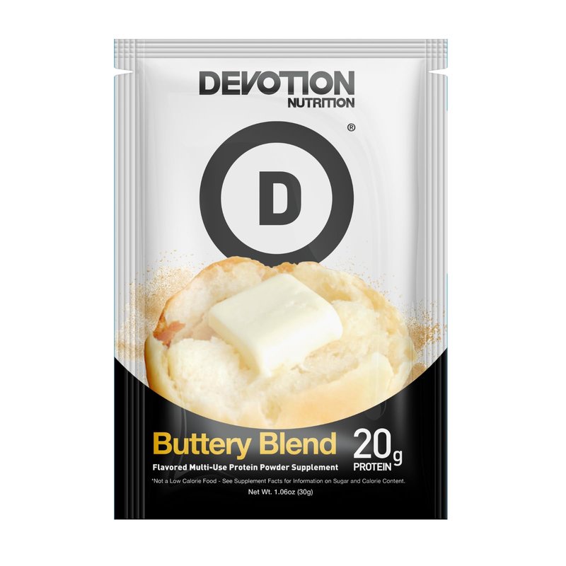 Devotion Nutrition Protein Powder Blend | Gluten Free, Keto Friendly, No Added Sugars | 1g MCT | 20g Whey & Micellar Protein | 12 Single Serving Packets (Buttery Blend)