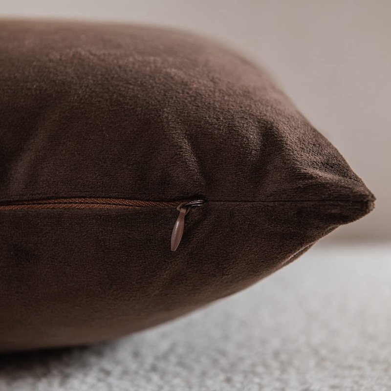 DEZENE Decorative Pillow Cases 18x18 Chocolate Brown: 2 Pack Cozy Soft Velvet Square Throw Pillow Covers for Farmhouse Home Decor