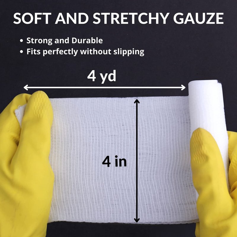 - JUST STRETCH, WRAP, SNIP: We provide medical gauze rolls of 4 Inches x 4 yards length per set so you can use as much or as little as you need for the comfort that’s right for you. Whether in the hospital or healing at home, our cotton gauze roll provides maximum absorption for minimum bleed-through