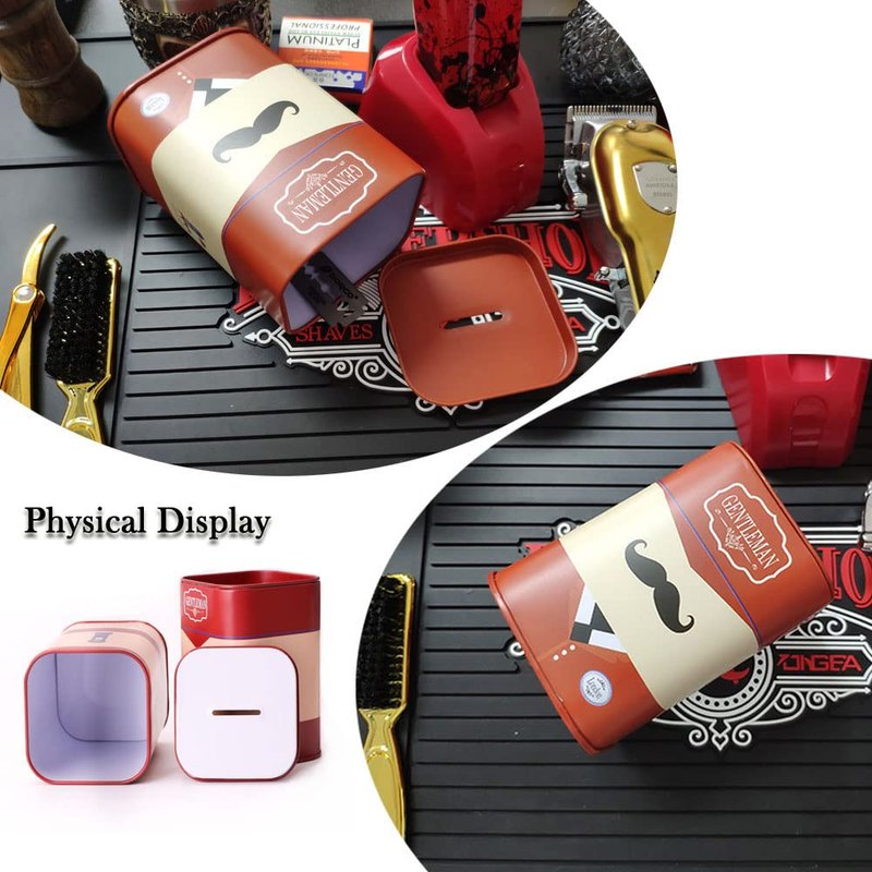 DHinkyoung Safety Razor Blade Disposal Case, Used Double Edge Razor Blade Disposal Container, Gentleman Style Detachable Razor Blade Bank with Red Beard Pattern for Salon and Barber Shop