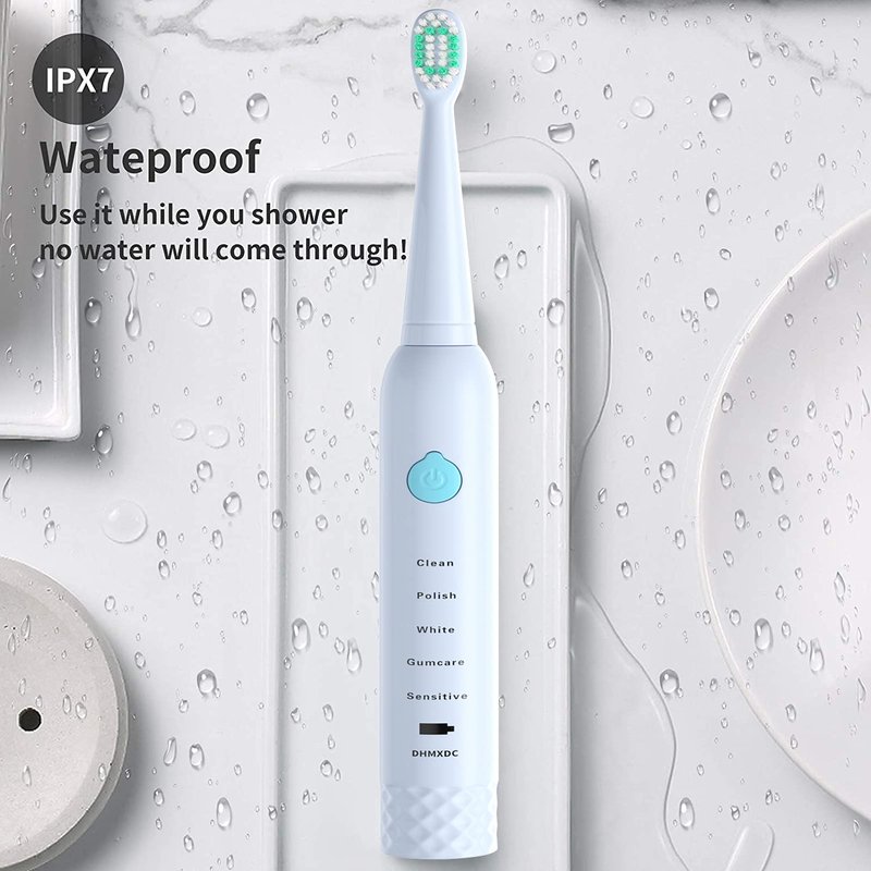 DHMXDC Sonic Electric Toothbrush for Kids and Adults, 5 Modes with 2 Min Build in Timer, Ultrasonic Toothbrush with 4 Brush Heads Charging Power Toothbrush