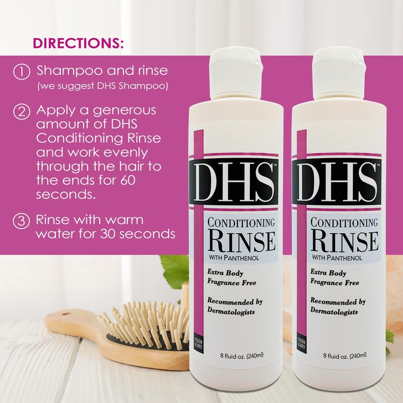 • How To Use- Shampoo and rinse well. Apply a generous amount of DHS Conditioning Rinse and work evenly through the hair to the ends for 60 seconds. Rinse with warm water for 30 seconds.