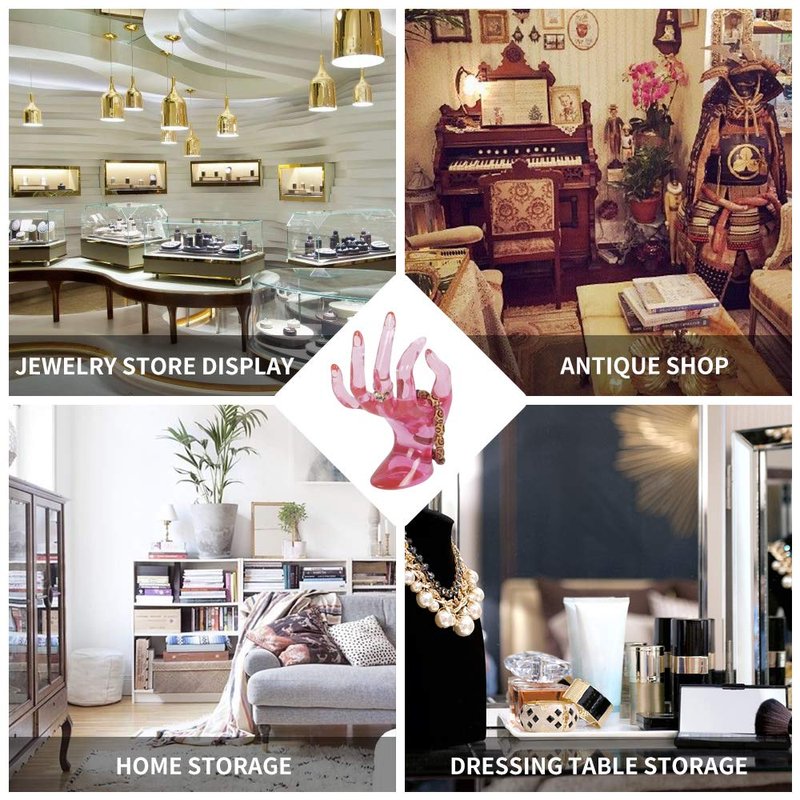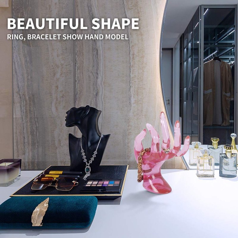 • ♕【Hand-shape Jewelry Holder】 The ring holder for jewelry is a hand-shaped design with the unique and elegant transparent pink, which can make your jewelry more attractive.