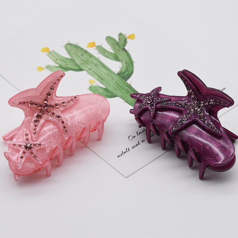 Diamond Starfish Claw Clip,Small Hair Clip for Women,Acetate Hair Clip,Small Hair Clip,Black