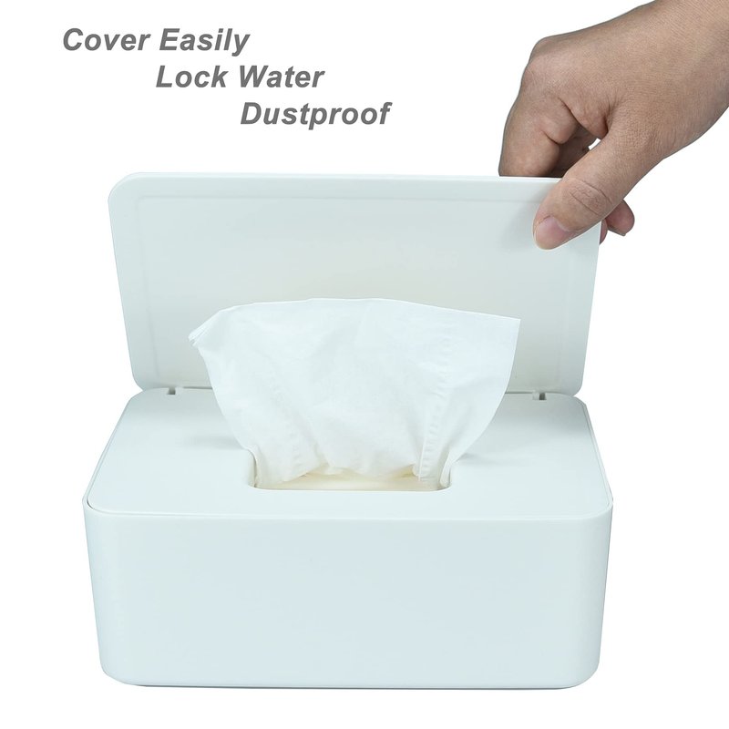 - Large Capacity: this wipes dispenser fits up to 60 wipes. The coverd plate dispenses one wipe at a time and the silicone gasket can keeps wipes fresh and moist, prevents baby wipes from drying out. Dimension:7.30" x 4.50" x 2.80".