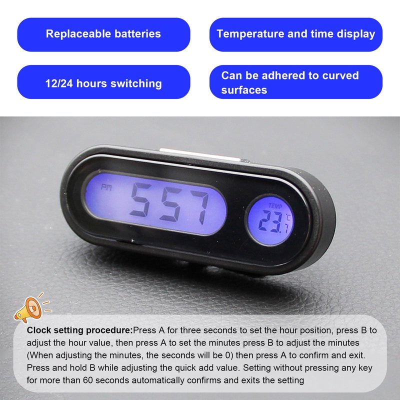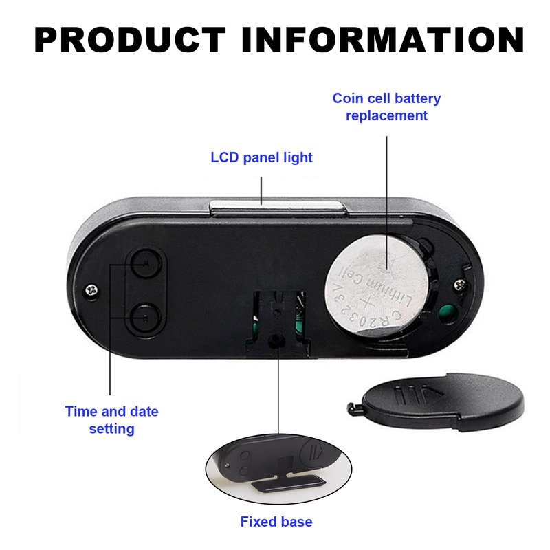 - 【Easy to Install & Carry】: You can set the time and date firstly, then peel off the strong adhesive and stick it to your car dashboard. You can adjust the angle which is fit. It can also be directly attached to the curved surface. Moreover, you can carry it everywhere for it's lightweight and small.