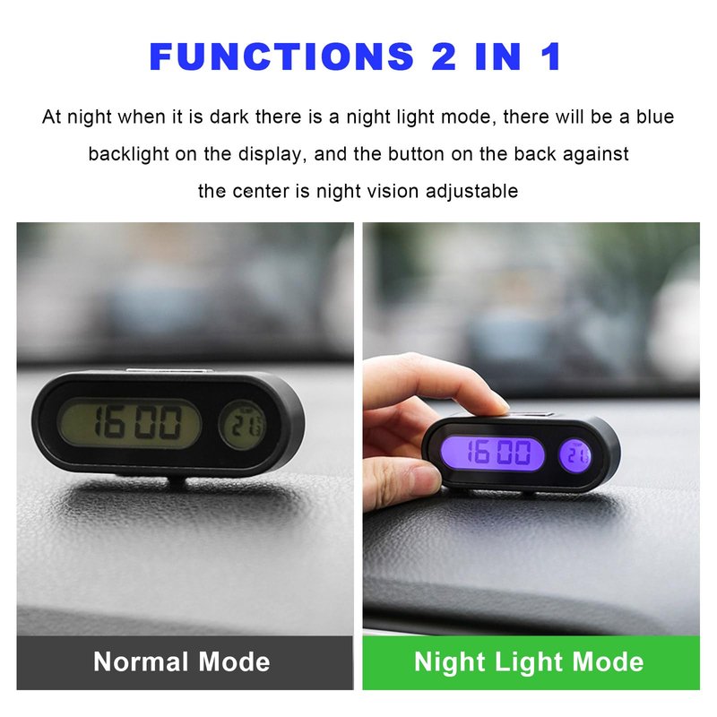 - 【LCD Backlight】: The surface of car clocks has an easy to read LCD display. It will switch two modes reasonably according to the driving situation. Especially at night or under dark light, it will switch to night mode, which helps the driver easily read the time and temperature and arrange driving time reasonably.
