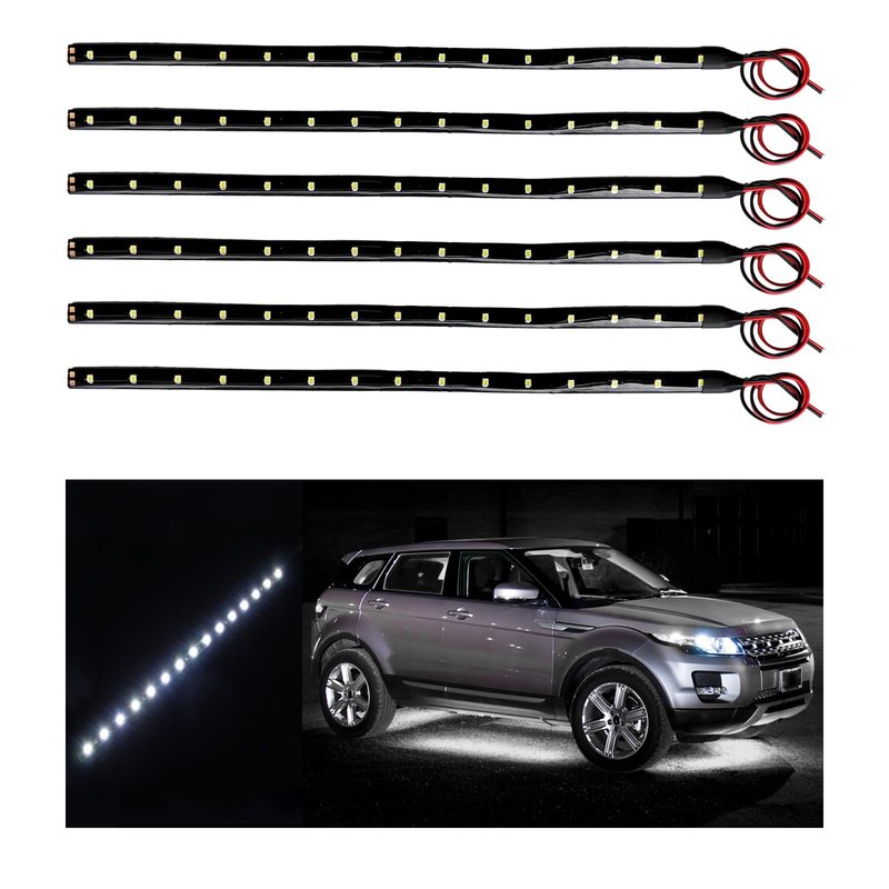 Dickno 6 PCS 15 LED Strip Underbody Light, 1Ft 12V Waterproof Car Led Interior Exterior Strip Light with 6 Inch Wire, Flexible Auto Light Strip Decoration for Car Motorcycle Truck Boat (White)