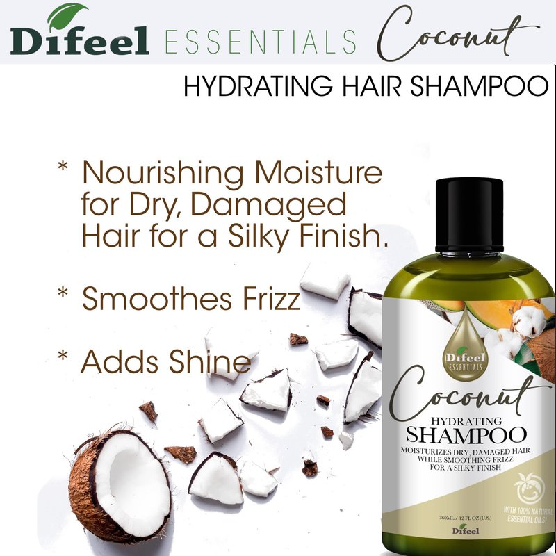 - Coconut Moisturizing Shampoo - Difeel Essentials Hydrating Coconut Shampoo tones and cleanses hair while adding intense hydration and a healthy shine. Nourishes and strengthens hair while locking in essential moisture.
