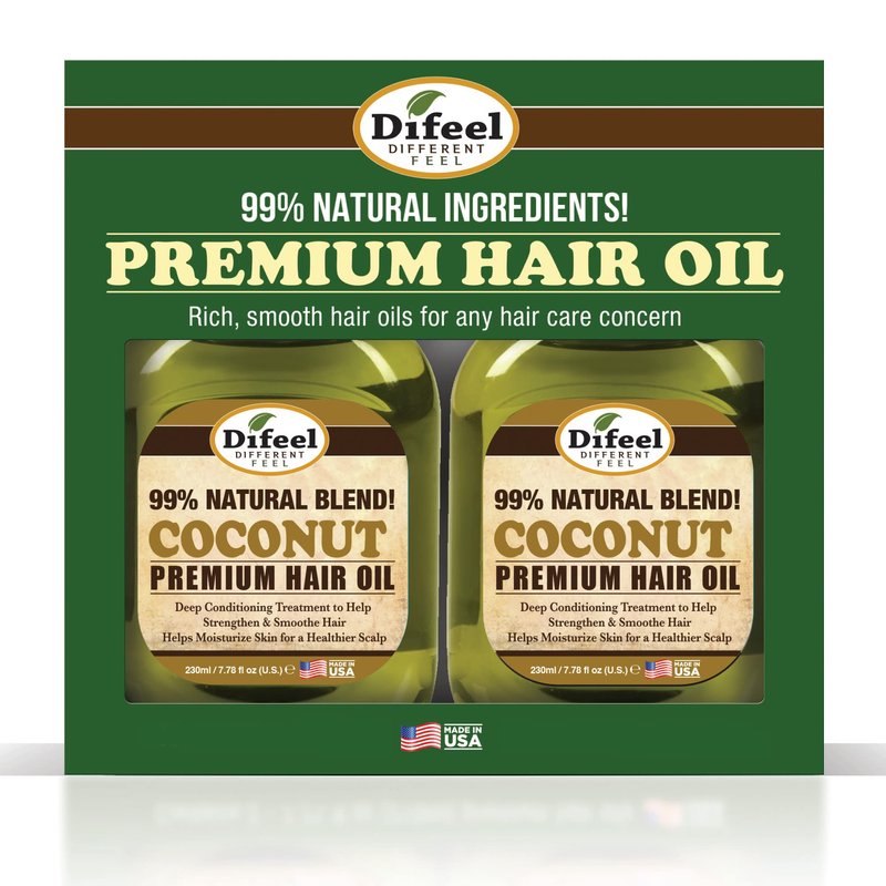Take your hair back to a healthy states with the Premium Mega Hair Oil Coconut from Difeel. Difeel mega care products incorporate natural botanicals like Argan, olive and jojoba oils coupled with advanced hair therapeutic technology to deliver rich moisture with a sheer, lightweight feel. Using Difeel oils, these high-end extracts can be used to solve a multitude of problems. VALUE PACK OF TWO (2) 7.1 Ounce Bottles - Easy Difeel Packaging - Made in USA
