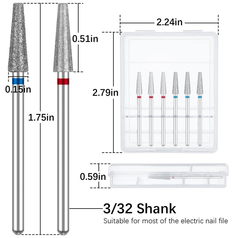- Nail Drill Bit Set: You will receive 6pcs russian manicure diamond cuticle remover bits with storage case, 3pcs medium and 3pcs fine diamond nail bit for Home and Salon Use.