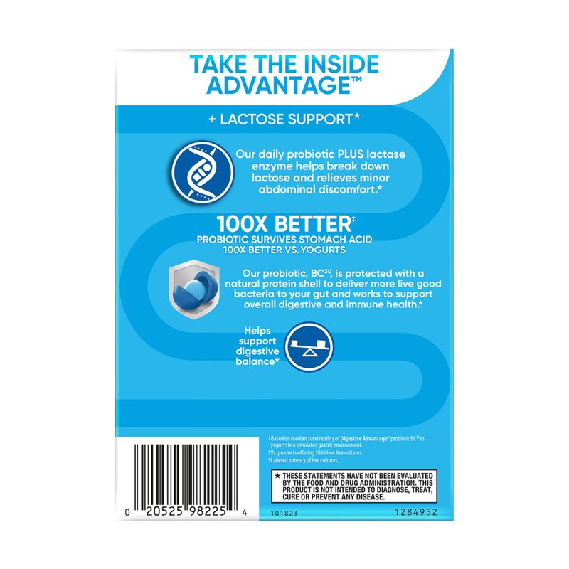 Digestive Advantage Lactose Defense Capsules (96 Count In A Box), Helps Breaks Down Lactose and Defend Against Digestive Upset, Supports Digestive and Immune Health, CFUs
